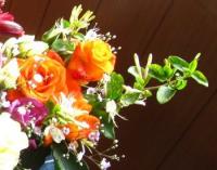 新築のプレゼント 庭や畑の花で作ったフラワーアレンジメント