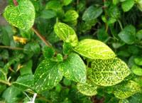 庭の入り口に地植えにした斑入りハニーサックルの葉がとてもきれいです。よく見れば二つと同じ模様がありません。