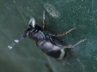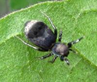 2010-7-11 (畑のナスの葉にいたアオオビハエトリ)