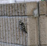 コゲラの巣穴があったのは、近所の庭にある太い幹が枯れてしまっているザクロの木。根元付近から数本枝が出てきています。(右の枝)