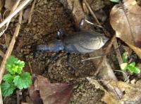 底穴に首を突っ込んでいましたが、腹部が太いので無理かなと思っていたら出ることができました。スタコラサッサと植木鉢の並んでいるところに逃げていきました。