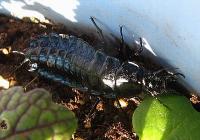よく畑で見かけるのは黒くて光沢がないマイマイカブリの成虫です。