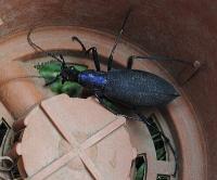 これはメタリック調で鮮やかな青系のマイマイカブリ。