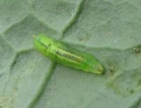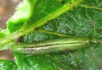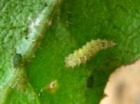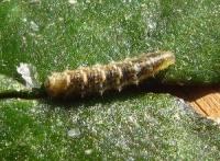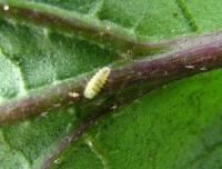 ナスのハボタンにこのような幼虫が・・・これもヒラタアブの幼虫でしょうか・・・