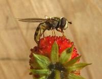 春には軒下のプランターの普通サイズのイチゴの葉にヒラタアブがいましたよ。