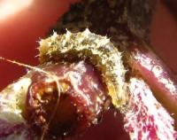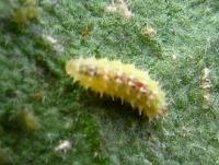 このヒラタアブの幼虫の特徴は体に突起があり、それほどスケルトン様になっていません。
