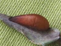 ヒラタアブのさなぎ。観察すれば成虫が見られたのに、どこかに置いて忘れてしまいました。