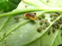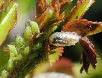 ヒラタアブの幼虫が出現してから2†3日後にはバラの新梢はきれいになります。
