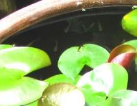 スイレン鉢の中にメダカがいました。ボウフラ(蚊の幼虫)を食べてくれるでしょう。
