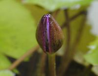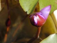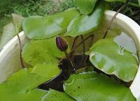 急いで我が家のスイレン(睡蓮)を見たら、つぼみかどうかはわからないほど小さい赤紫の丸いものがありました。多分つぼみかな・・・