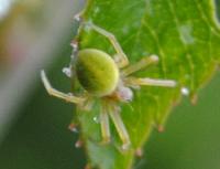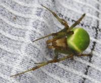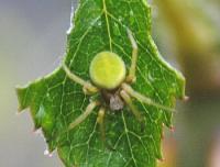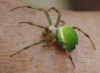 おっ、緑のきれいなクモがいると言ったので、見たらサツマノミダマシでした。グリーンが目立った美しいクモでした。