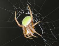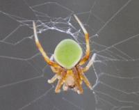 若草色がきれいなクモです。早速調べてみると「サツマノミダマシ」に行き着きました・・・