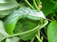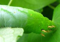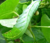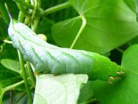 ホシホウジャク幼虫の体は淡褐色あるいは緑色です。