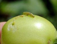トマトが大好きなオオタバコガの幼虫です。2010年に大発生して以来あまり見かけなくなっていました。