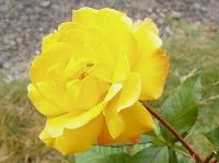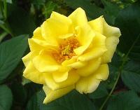 夏は花弁の赤みは薄くなり、花弁数も少ないです。本来は夏は咲かせないで、秋に咲くように蕾を摘んだほうがよいのですが、ゴールド・マリーに限らずバラやその他の植物全般に対し現在自然に任せているというか放任の最中です。(足のケガ