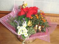 プリムラ・ポリアンサ(白)、ポインセチア、シーマニア、ハツコイソウ。