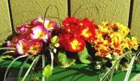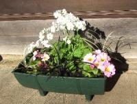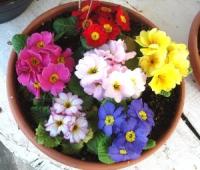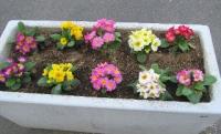 下の寄せ植えはプリムラ・ポリアンとプリムラ・ジュリアンのミックス。