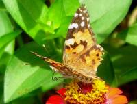 前年の夏、ヒャクニチソウの花に止まっていました。