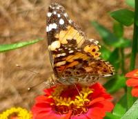 ヒャクニチソウの花のまわりでは、このヒメアカタテハ以外にも、アゲハチョウがたくさん乱舞や吸蜜していましたよ!