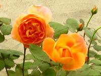 花が開くと花びらの内側は濃いオレンジ色になり、外側はイエローとオレンジが混ざり合ったような色合いになるレディ・エマ・ハミルトン。