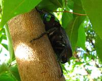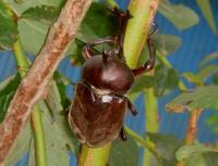 大分前ですが、畑のブルーベリーの木にいたカブトムシの成虫。