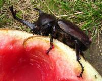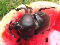 昔からカブトムシの成虫は子供達に大人気! 角がカブトのようでかっこいいのかな?