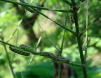 鳥やトカゲなどの外敵に食べられそうになると、幼虫は不快な味と臭いのするねばねばした毒液を出す習性があります。