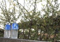 枝はツボミが多く花は少ないのですが、水を入れたペットボトルに入れてブロック塀の上に置きました。