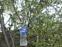 ぶら下げたりもしました。ペットボトルに入っているのはつぼみが多いので受粉はムリかな・・