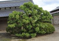 後ろにはツゲがあります。このツゲも面白い剪定です。こういう剪定もあるのかと感心しました。