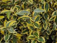 グミの仲間ですが、実は付かずに葉を鑑賞するタイプで、黄色の外斑がとても鮮やかで、成葉になるほど鮮明になり、輝くような黄色になります。常緑性で秋から冬の間の色が冴えて美しく、彩りの少ない冬の庭を明るくしてくれます。初冬には芳香のある花が楽しめるということです。