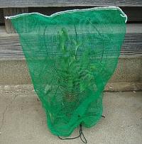 この網は収穫した野菜を入れるもので、ブルーベリーの鳥害対策に10枚ほど購入したものです。