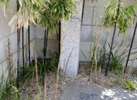 義弟自ら石を敷いたのですが、渋い敷石とクロチク(黒竹)がマッチして、和風の感じのよい門まわりになりました。