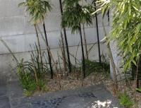 紫竹(しちく)とも呼ばれ、茎が紫褐色にもなるようですが、これは同じクロチク(黒竹)でも日当たりが悪いとそうなるのか、また別の ハチク(淡竹)の変種か?