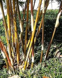 ベニホウオウチクの黄色の地に緑色の縞がはいるのが特徴で、これは紅色が入っています。