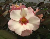 原種ロサ・ペルシカの改良種で、シリーズ特有の花びらの中心に赤のブロッチが入っています。