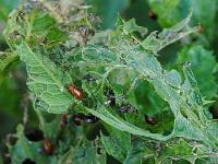 9月のズッキーニ「ブラックトスカ」はウリハムシが集団で葉を食害していました。