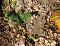右のズッキーニが自然に割れて種がたくさん溢れています。適度の気温のときに発芽してしまうのでしょう。来年の春にはどのくらい発芽してくるのでしょうか?