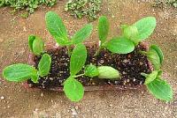 発芽1週間後のズッキーニ「ブラックトスカ」。本葉が出てきました。