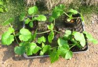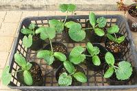 市販の苗ぐらいのポリポットに植え替えました。ズッキーニは種から育てても割りと簡単ですね。