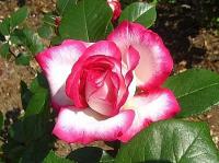 ここでは花は白にピンクの覆輪に写っていますが、データによると黄白に明紫赤の覆輪とあります。