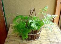 アスパラガスの寄せ植えですが、別々のポリポットに入っています。右側はプテリスです。