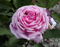 ピンクの四季咲き中輪の花で、花付が良い剣弁高芯咲き(抱え咲き ?)。