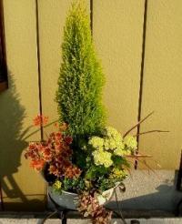 これも他所のゴールドクレストの寄せ植えです。