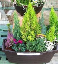 春のコニファーの寄せ植え