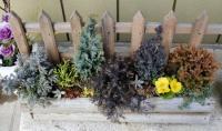 コニファー3種類、ヒイラギ、サザンクロス、ガーデンシクラメン、ハツユキカズラなど
