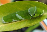 ホームセンターの柑橘類コーナーで見つけたアゲハチョウの幼虫。