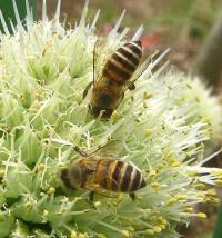 ネギの花の上のセイヨウミツバチ 2012-5-8