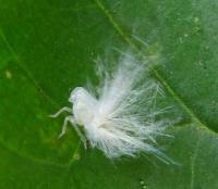 スケバハゴロモの幼虫はベッコウハゴロモの幼虫と似ていますが、体がグリーンらしいですが、私の画像では白いです。