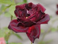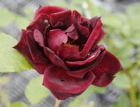 ↓我が家の名札落ちのビロードのようなバラの画像です。